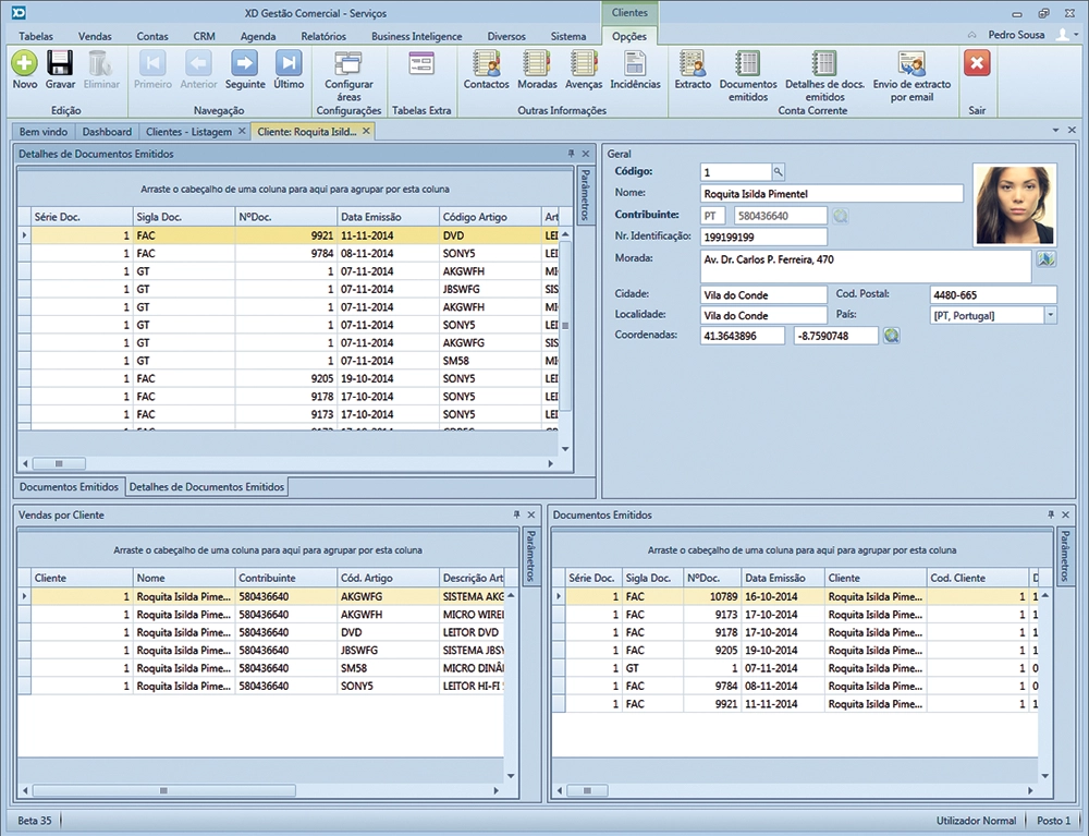 Mas não só, graças às áreas configuráveis pode com extrema facilidade aceder a toda a informação respeitante ao cliente, como guias pendentes, extratos, saldos, vendas, e até ocorrências registadas.