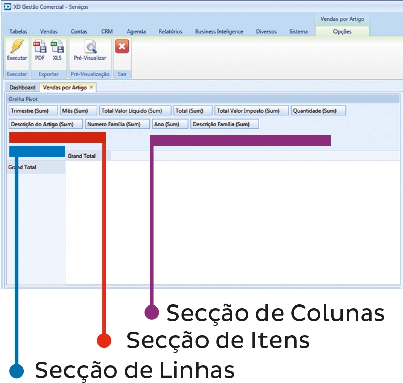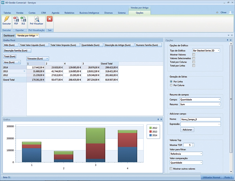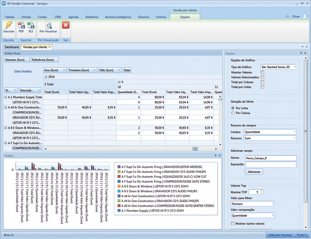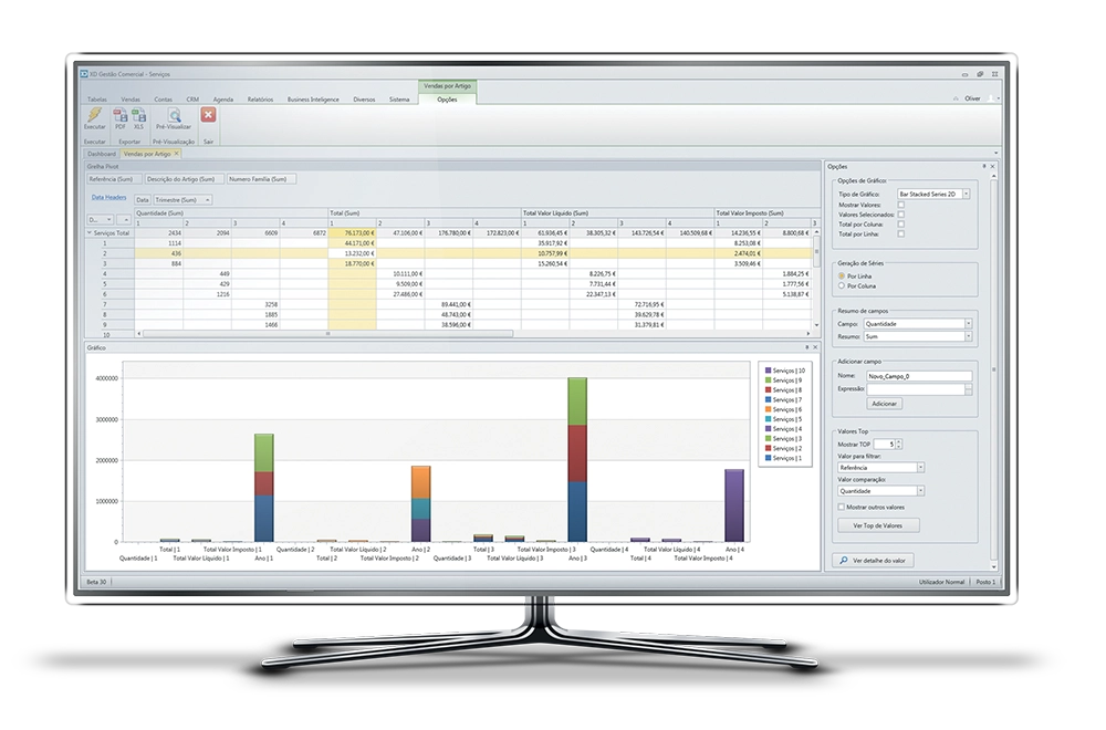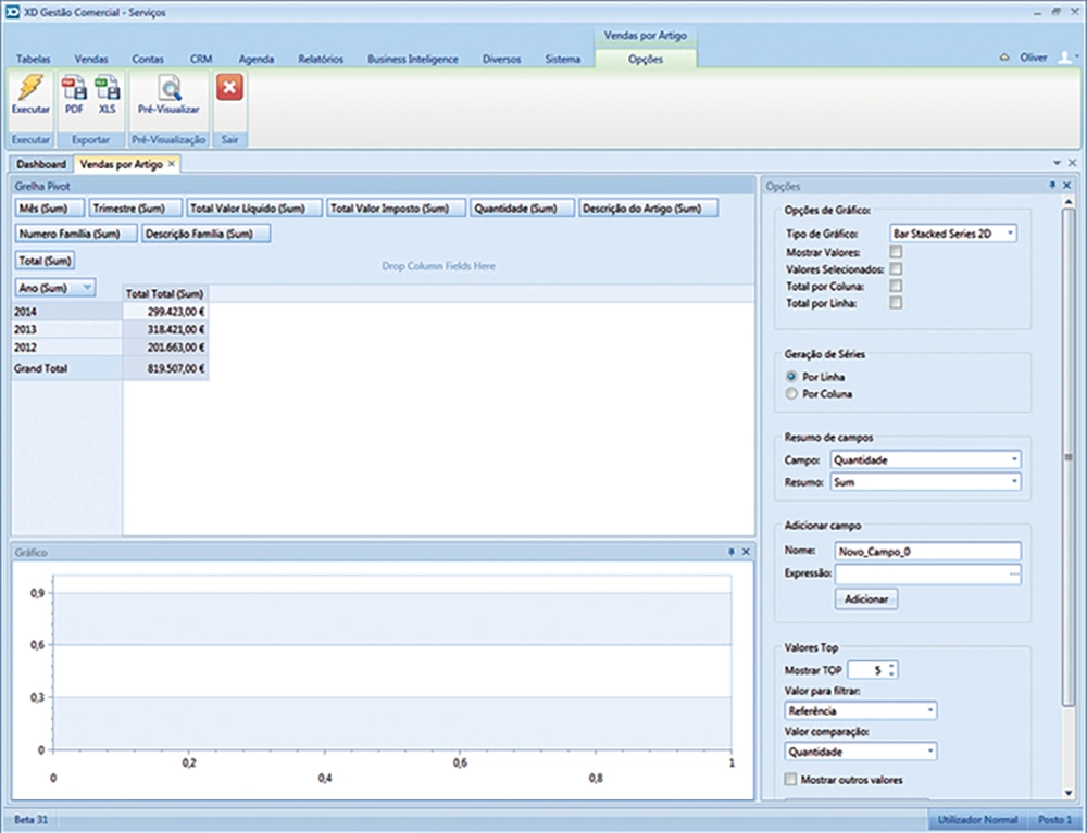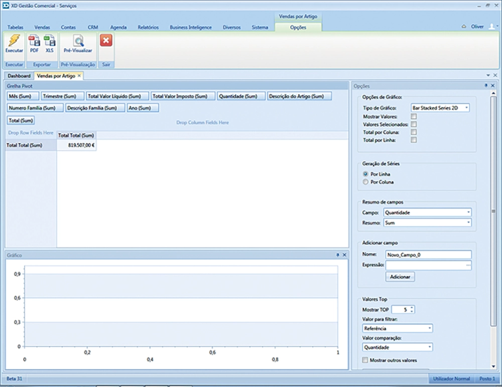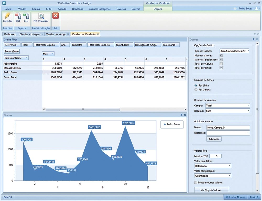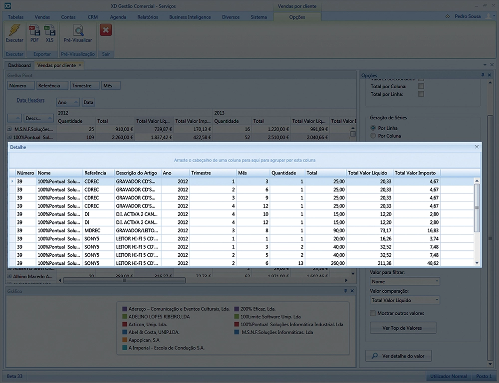 Esta nova funcionalidade permite obter tabelas e gráficos de uma forma instantânea, permitindo assim ao utilizador do XD Gestão Comercial aceder às informações pretendidas de uma forma rápida e intuitiva.