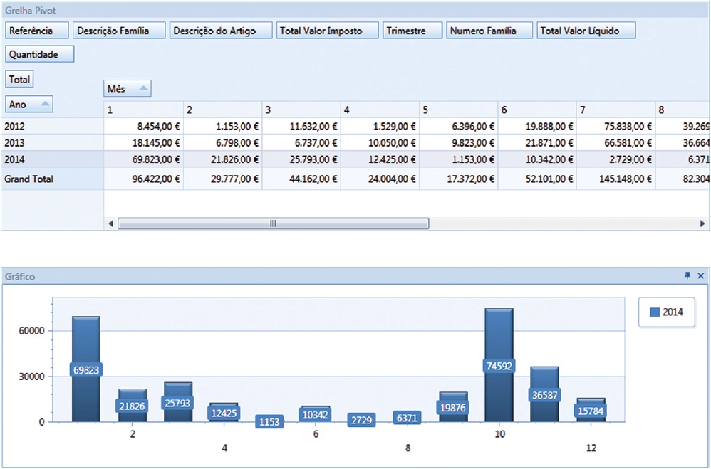Esta grelha de dados assegura que o utilizador análise visualmente e graficamente os dados apresentados de diferentes e múltiplas perspectivas.