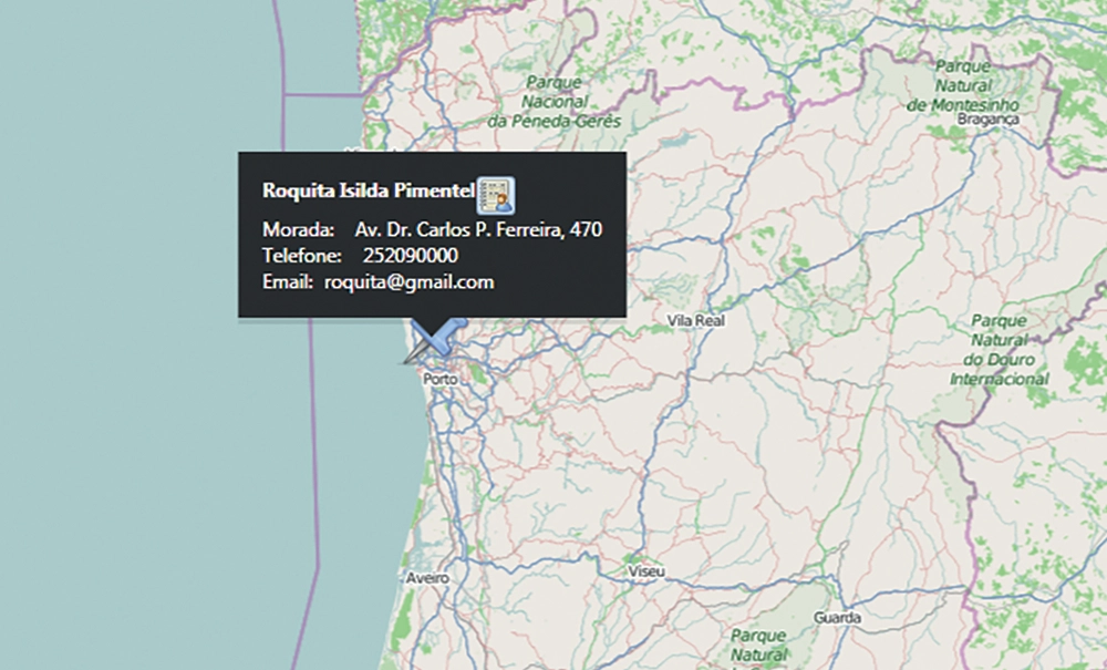Dentro do mapa o acesso ao cliente é imediato através do “cartão de visita” podendo no caso de pretender mais informação, aceder à ficha completa de cliente.