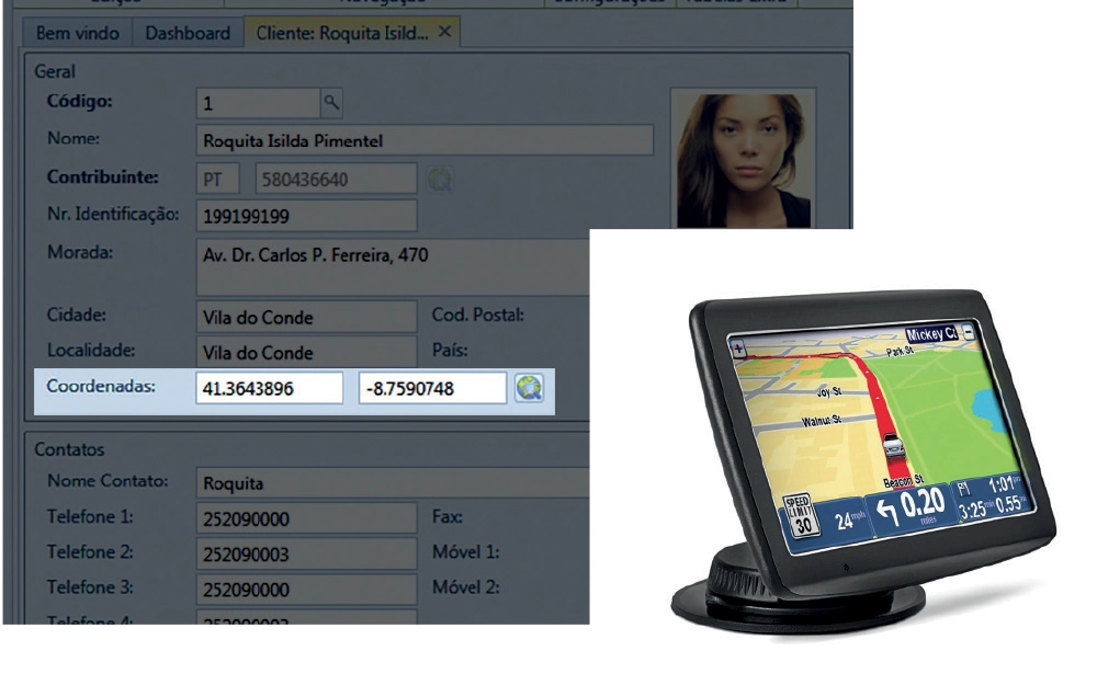Com base na morada constante na ficha de cliente as coordenadas de GPS são geradas facilitando assim a informação a dar aos vendedores, motoristas ou até transportadores.