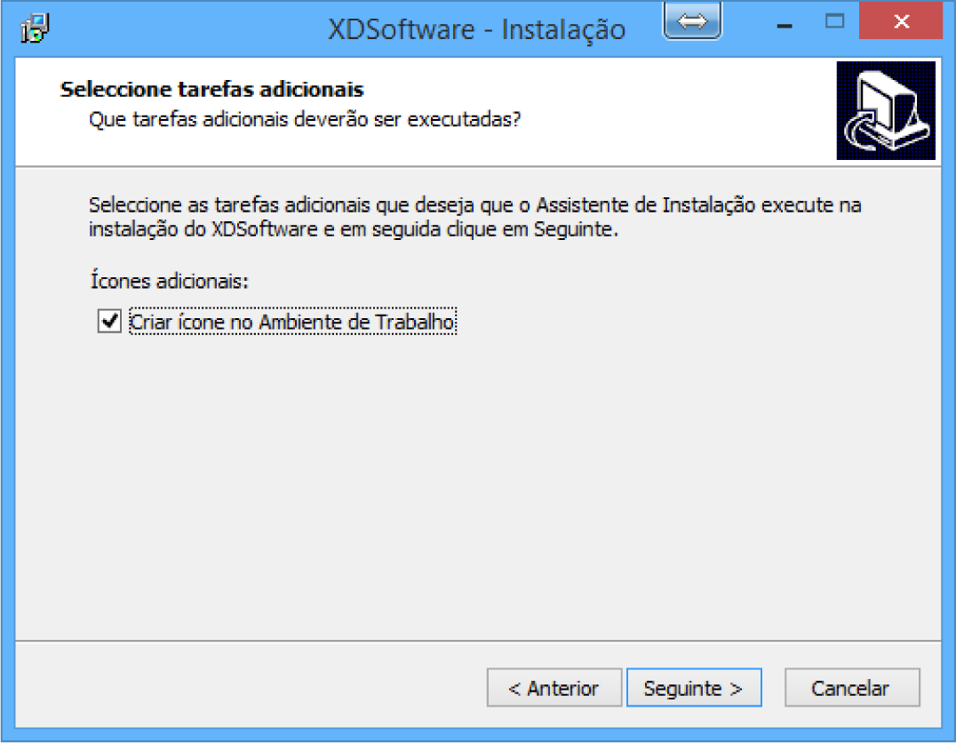 Após fazer seguinte pode opcionalmente indicar se um atalho deve ser criado no ambiente de trabalho do Windows: