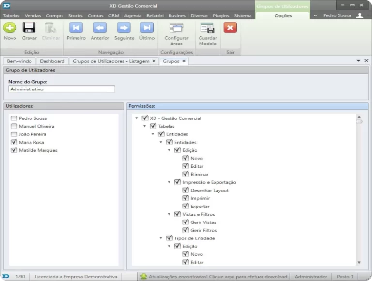 Criação de utilizadores, manutenção de Palavras-Chaves, bloqueio de acesso a diversos utilizadores, controlo de operações por utilizador e permite manter vários tipos de registos.