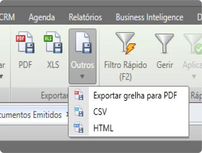 Permite exportar vários tipos de dados e relatórios em diversos formatos Ex: Excel, HTML, PDF, RTF ou TXT.