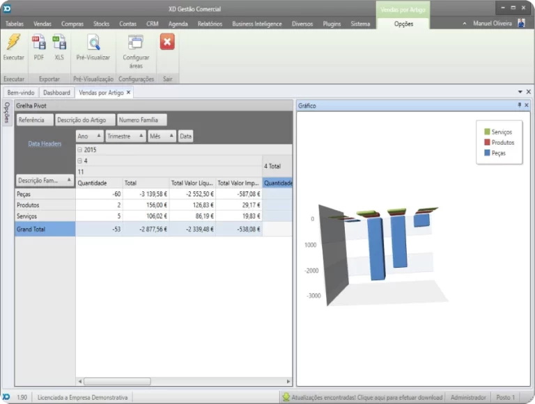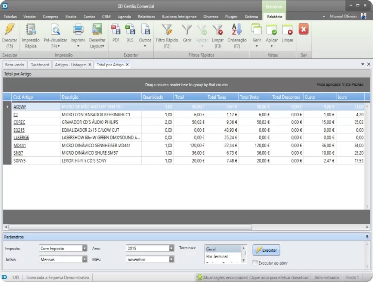 Mapas de vendas com lucros e percentagens de rentabilidade por: Produto/Serviço, Família, por Dia, por Fornecedor, por Hora, entre Datas, por Cliente/Produto e curvas Abc.