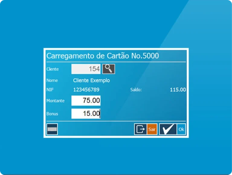 Pode-se associar um cartão a um cliente, este cartão pode ser carregado com valor para ser descontado em várias idas do cliente à discoteca.É possível criar um bónus em valor para consumo mediante o valor de carregamento.