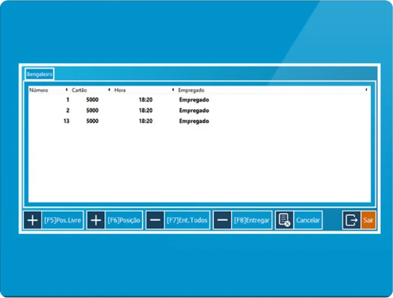 Aqui o porteiro pode inicializar os cartões e poderá consultar se o cartão está pago ou não. Aceita publicidade em imagem e vídeo, o mostrar dos artigos consumidos é configurável.