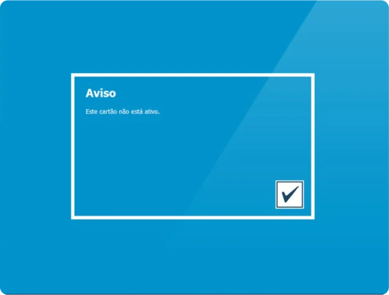 Ao passar num bar para registo, caso o cartão não esteja inicializado à porta, indica mensagem ao operador, ex: