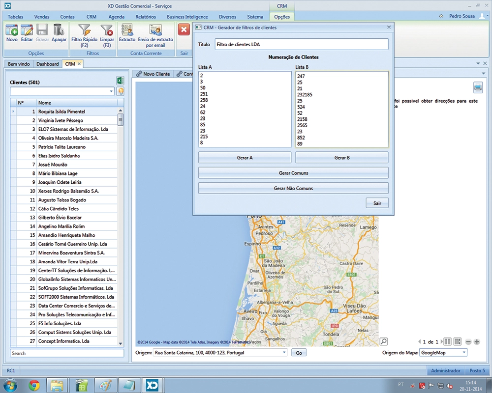 Essas querys (filtros) criados de forma simples e intuitiva ficam gravadas para que em qualquer altura possa usá-las para, por exemplo, ver apenas os clientes com dívidas, ou os clientes de determinada zona geográfica.