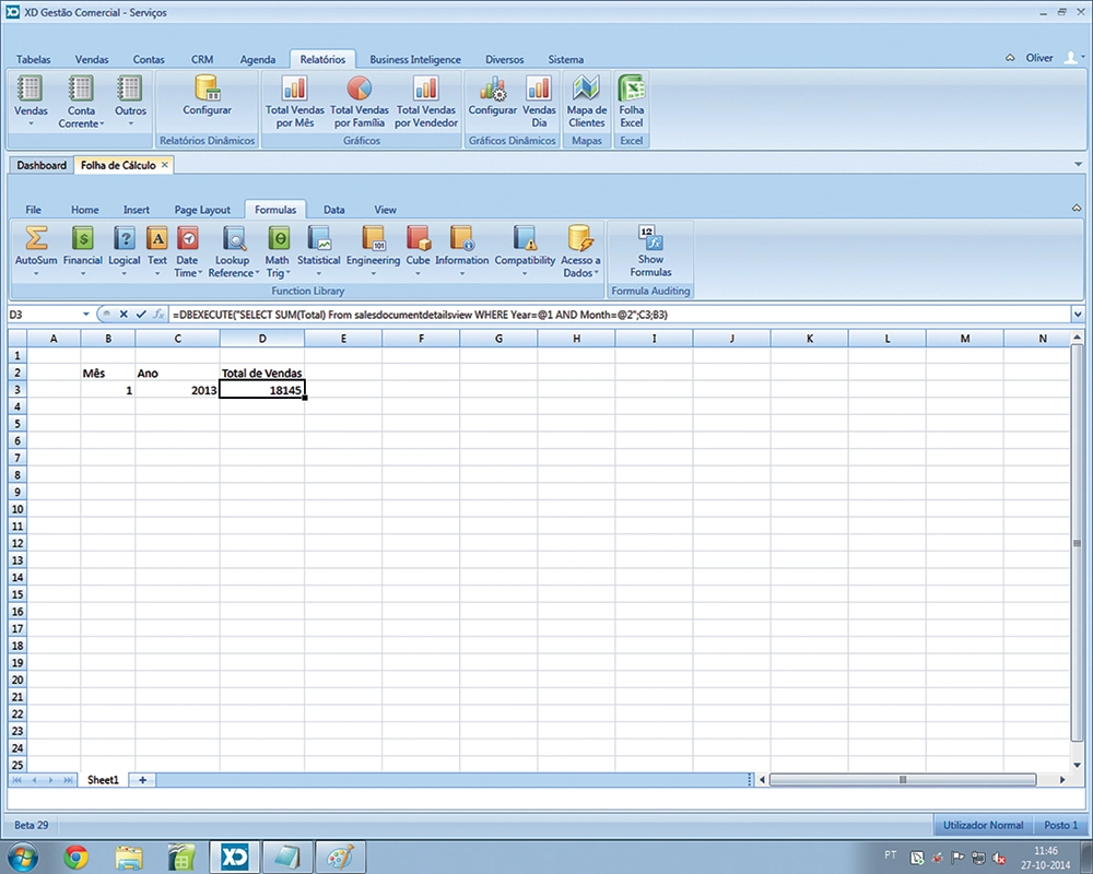 =DBEXECUTE(“SELECT SUM(Total) From salesdocumentdetailsview WHERE Year=@1 AND Month=@2”;C3;B3)