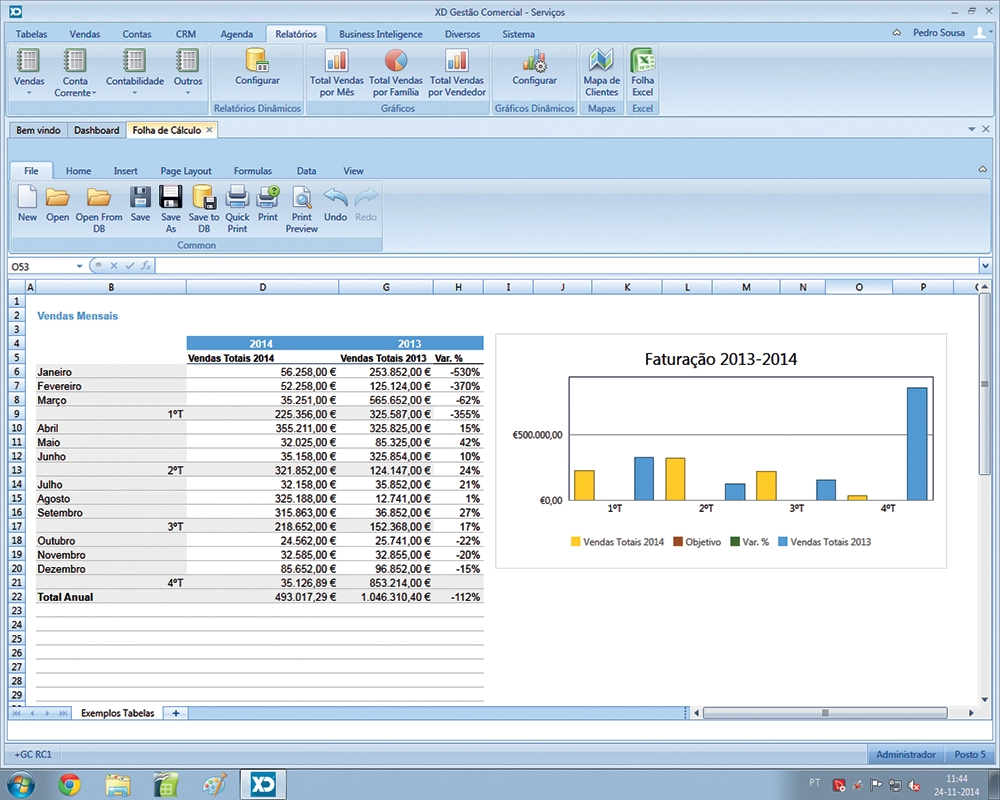 Agora poderá editar folhas de cálculo diretamente na sua Gestão Comercial, com a grande vantagem de ter um conetor direto à base de dados, possibilitando campos de fórmulas que poderão ser por exemplo somatórios de dados reais na base de dados da XD GC.